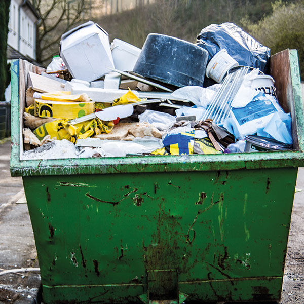 Schadstoffverunreinigte und anderweitig belastete Abfälle wie zum Beispiel Farb- und Lackeimer oder asbesthaltige Stoffe sind kein Baumischabfall. Diese Abfälle müssen getrennt entsorgt werden.