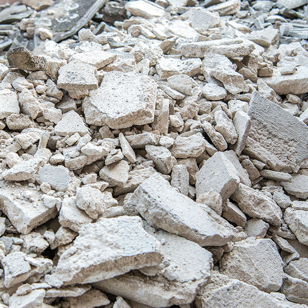 Bauschutt besteht aus mineralischen Materialien und ist durch Zerkleinerung, Sortierung und Siebung verwertbar (Bauschuttrecycling).